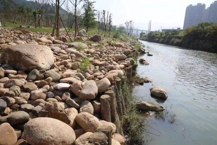 木樁卷包護(hù)岸是以木樁護(hù)坡、卷包覆面護(hù)土的天然材料護(hù)岸,網(wǎng)狀的卷包內(nèi)填礫土或椰殼等,為植物和小型動物提供繁殖空間。