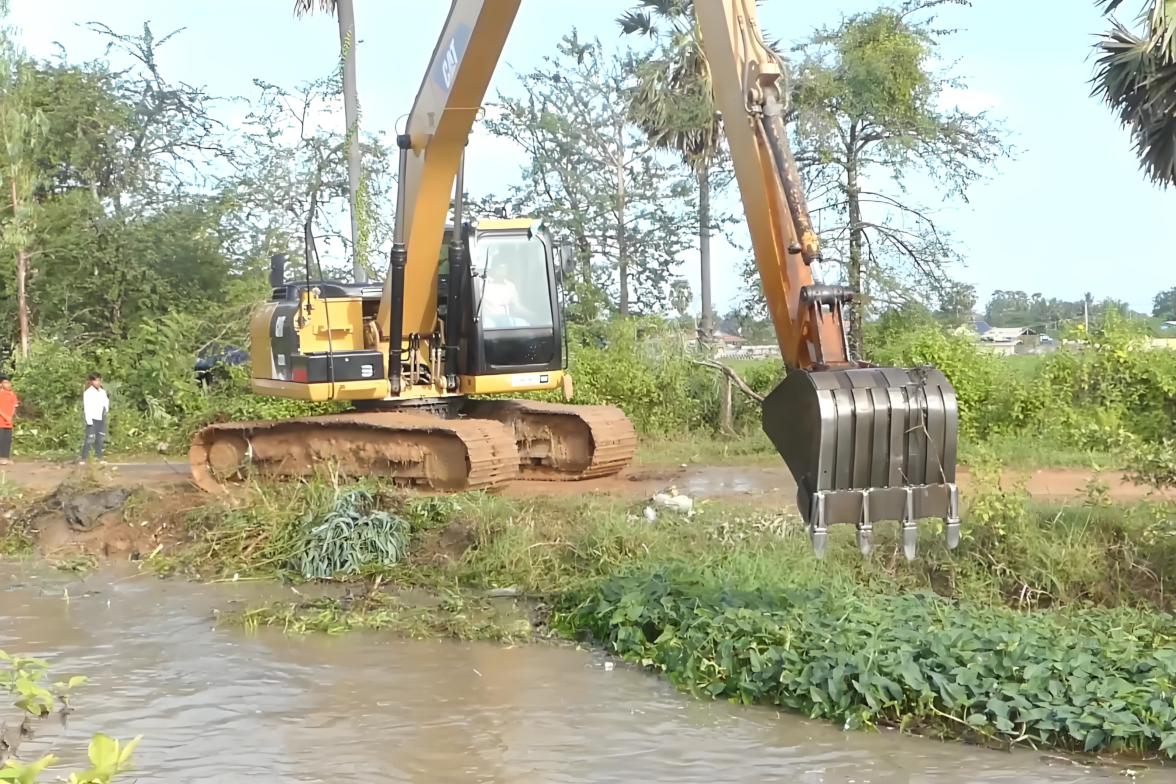 空間限制也很關(guān)鍵,狹窄的河道、岸邊有障礙物(比如電線桿、建筑物)時(shí),挖機(jī)回轉(zhuǎn)半徑受限,鏟斗不能充分展開,卸土也麻煩。